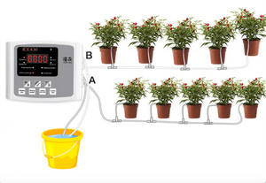 משאבת מים השואבת את מי ההשקיה ממיכל מים (מיכל מים אינו כלול בערכה)